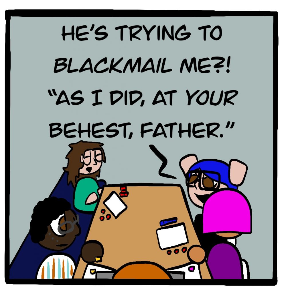 The game they’re playing in this comic is the FATE Core System by Evil Hat Productions. It actually exists! You can get it here for a suggested donation.