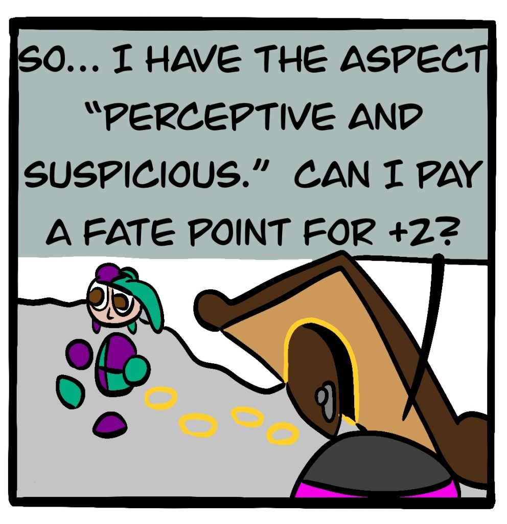 The game they’re playing in this comic is the FATE Core System by Evil Hat Productions. It actually exists! You can get it here for a suggested donation.