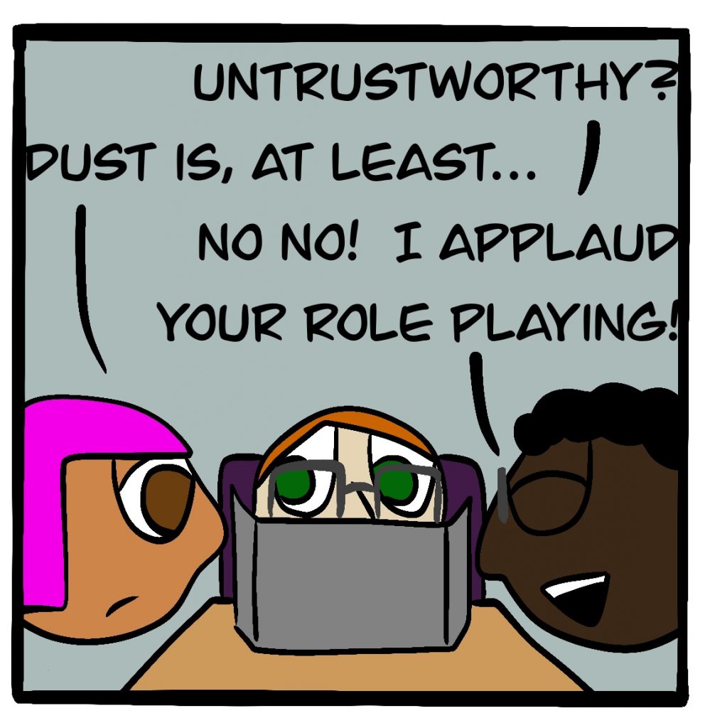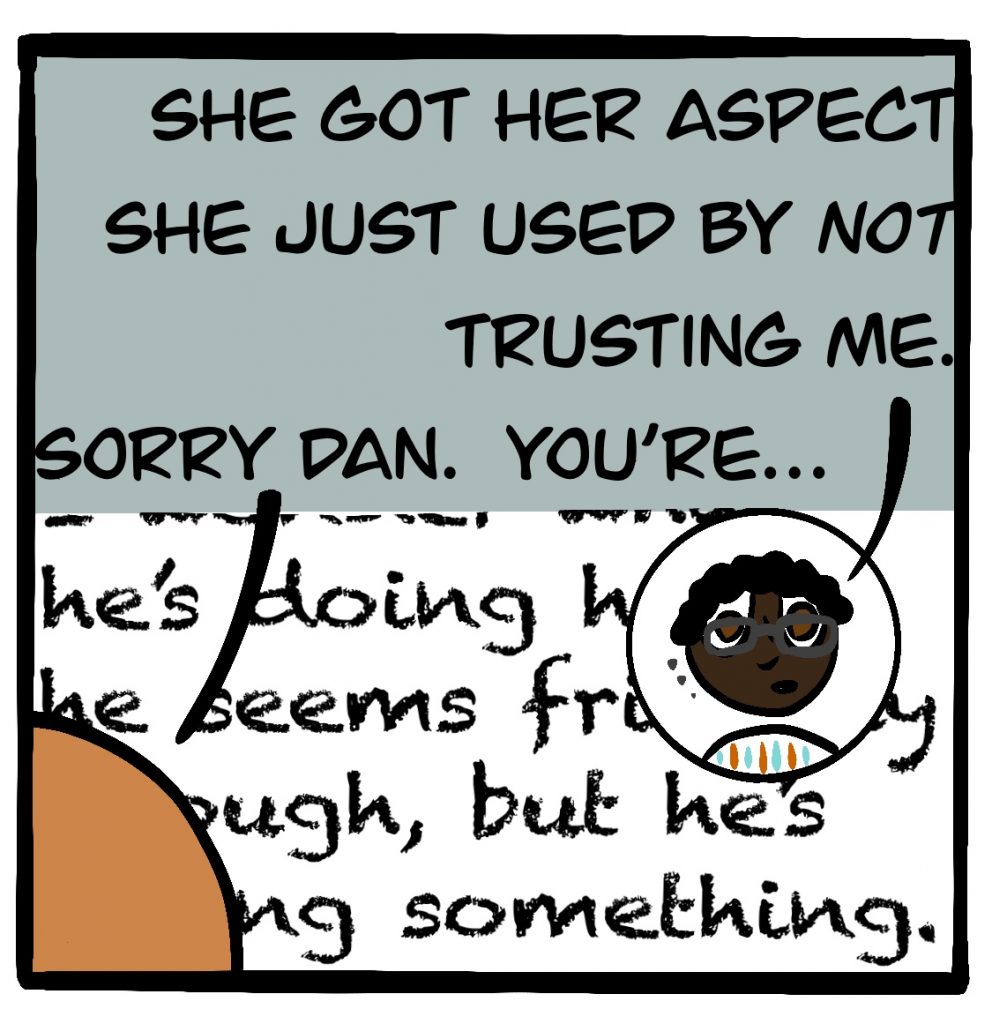 The game they’re playing in this comic is the FATE Core System by Evil Hat Productions. It actually exists! You can get it here for a suggested donation.