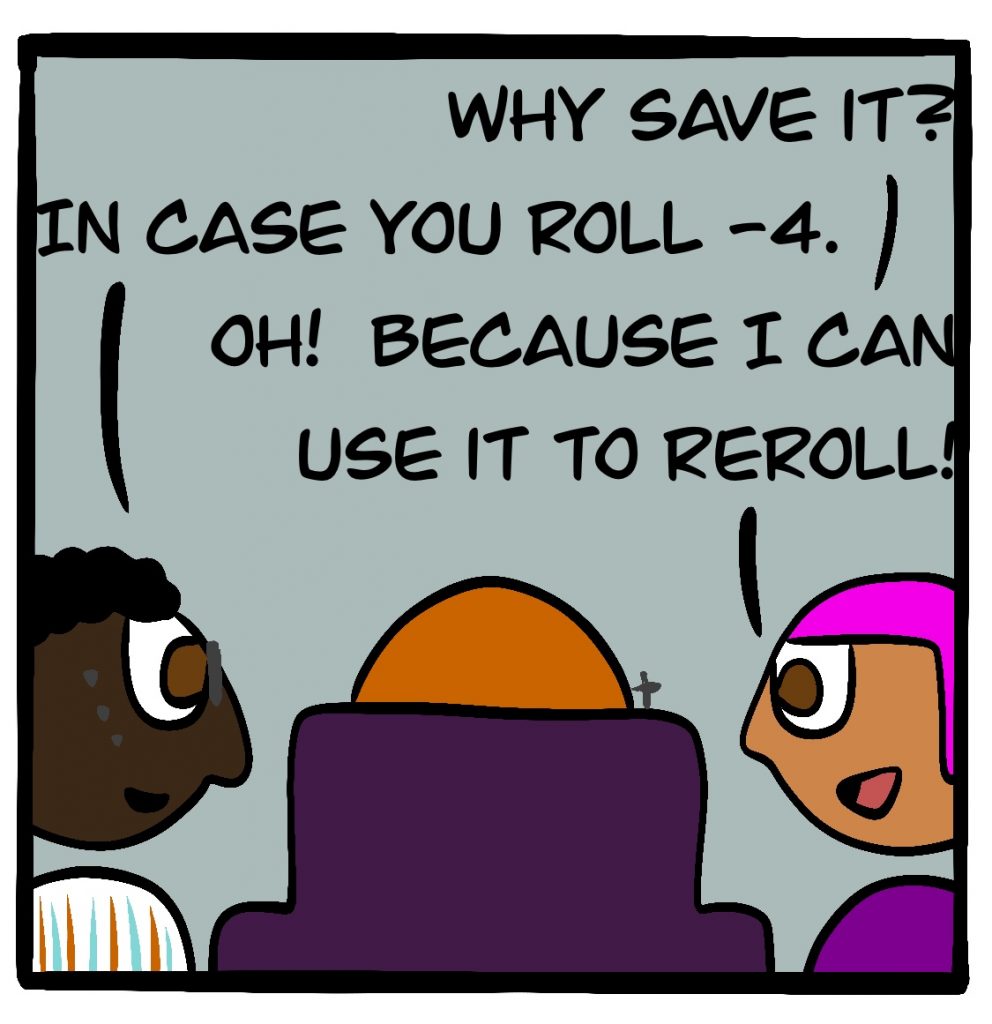 The game they’re playing in this comic is the FATE Core System by Evil Hat Productions. It actually exists! You can get it here for a suggested donation.