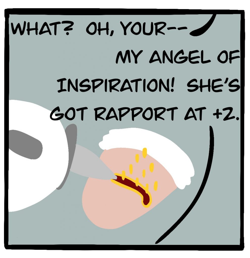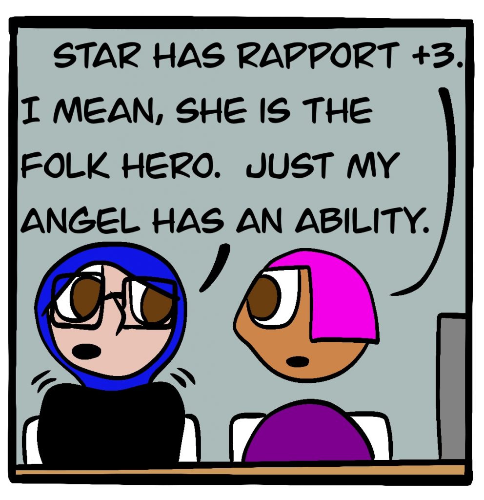 The game they’re playing in this comic is the FATE Core System by Evil Hat Productions. It actually exists! You can get it here for a suggested donation.