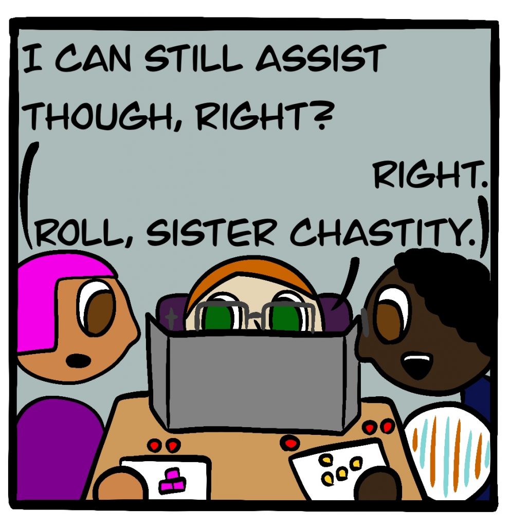 The game they’re playing in this comic is the FATE Core System by Evil Hat Productions. It actually exists! You can get it here for a suggested donation.
