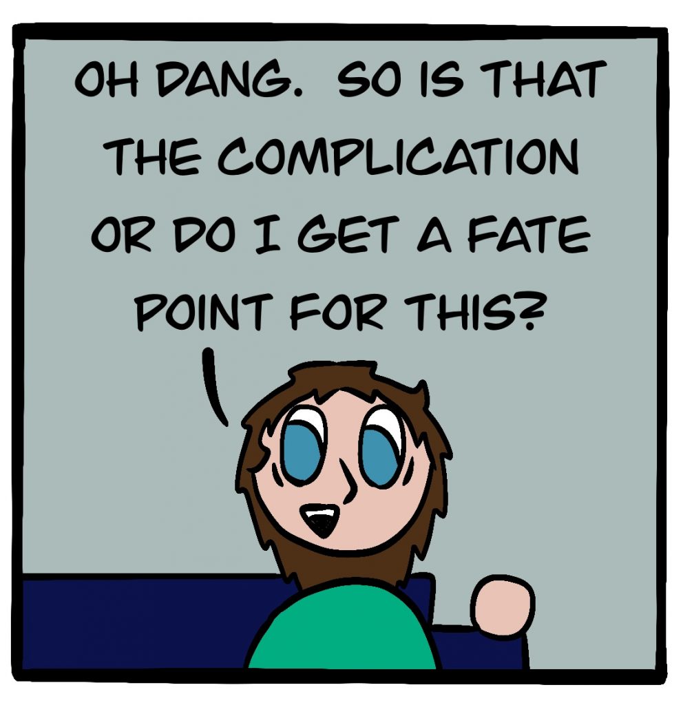 The game they’re playing in this comic is the FATE Core System by Evil Hat Productions. It actually exists! You can get it here for a suggested donation.