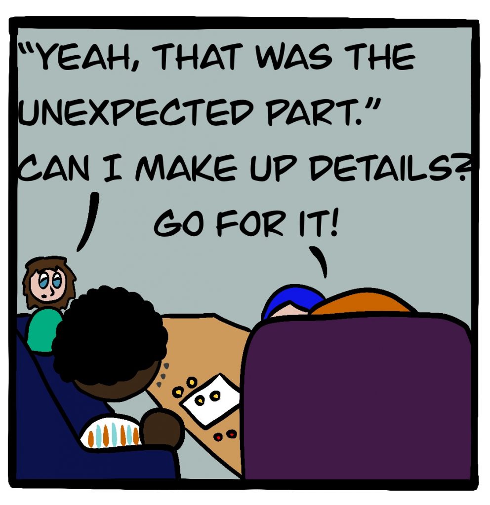 The game they’re playing in this comic is the FATE Core System by Evil Hat Productions. It actually exists! You can get it here for a suggested donation.