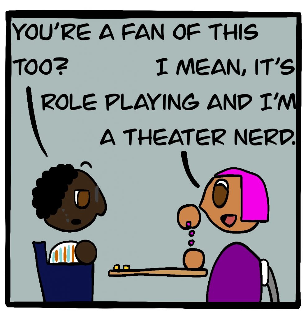 The game they’re playing in this comic is the FATE Core System by Evil Hat Productions. It actually exists! You can get it here for a suggested donation.