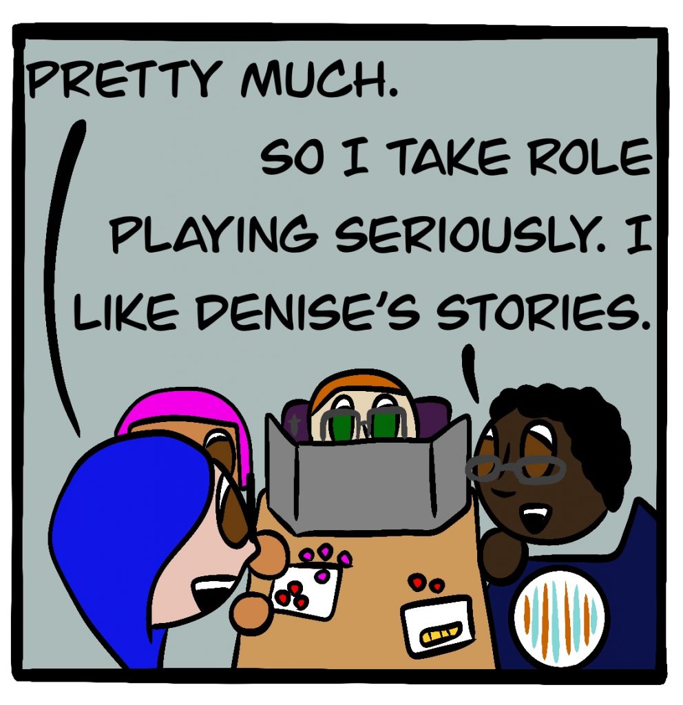 The game they’re playing in this comic is the FATE Core System by Evil Hat Productions. It actually exists! You can get it here for a suggested donation.