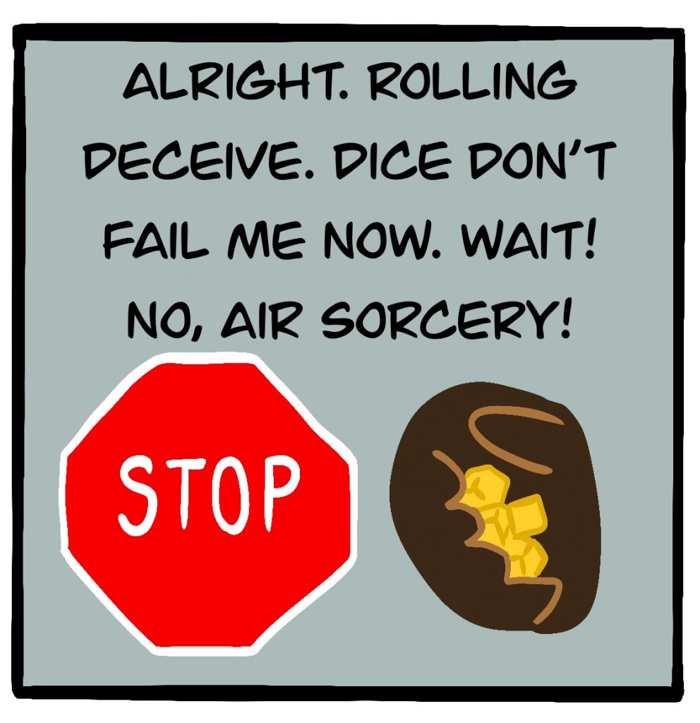 The game they’re playing in this comic is the FATE Core System by Evil Hat Productions. It actually exists! You can get it here for a suggested donation.